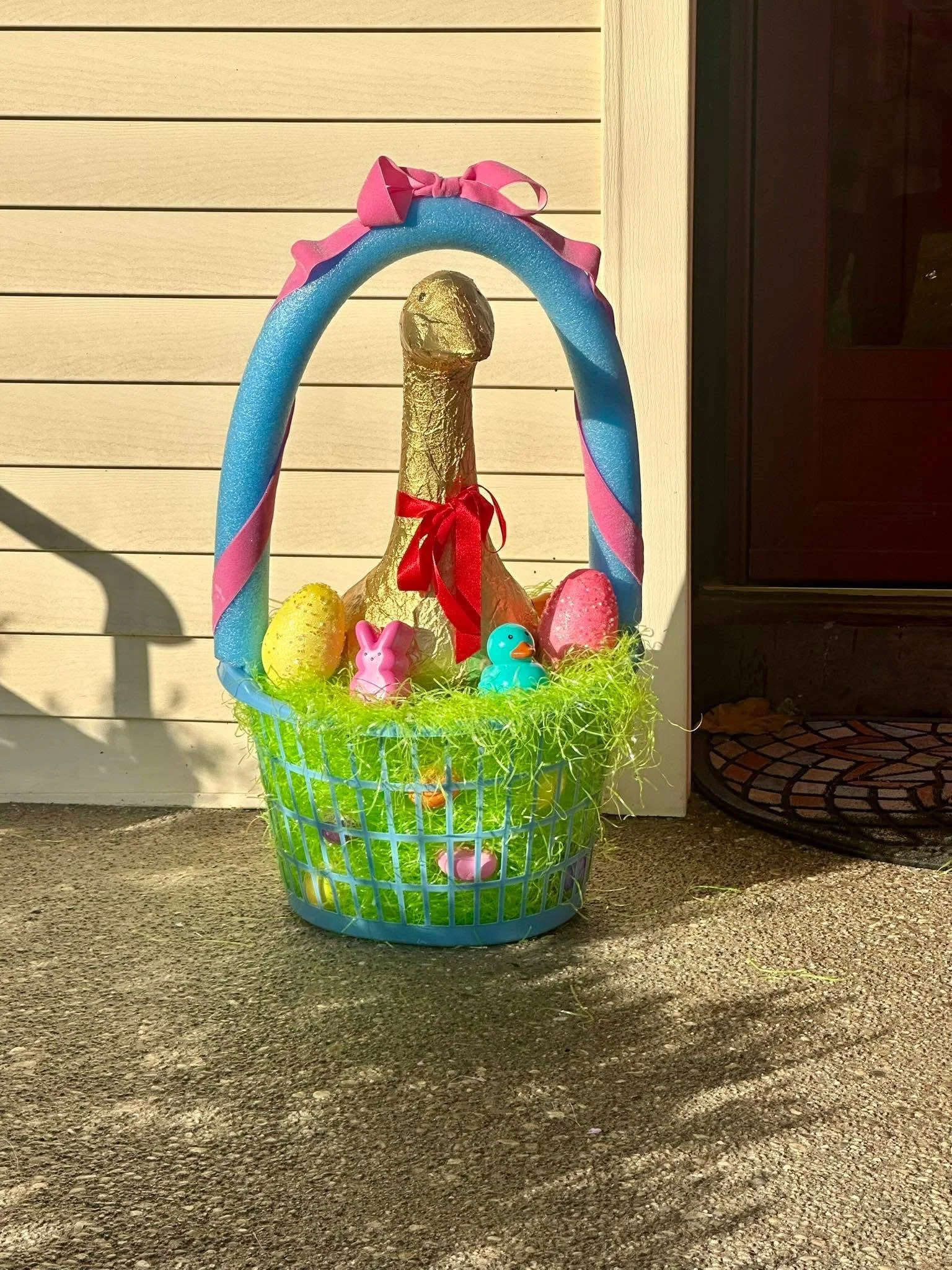 This lovely golden goose, Sillie Goose, and her Easter ensemble styled by Karen Marie!